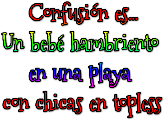 Frase fondo transparente - Confusión es... Un bebé hambriento en una playa con chicas en topless.